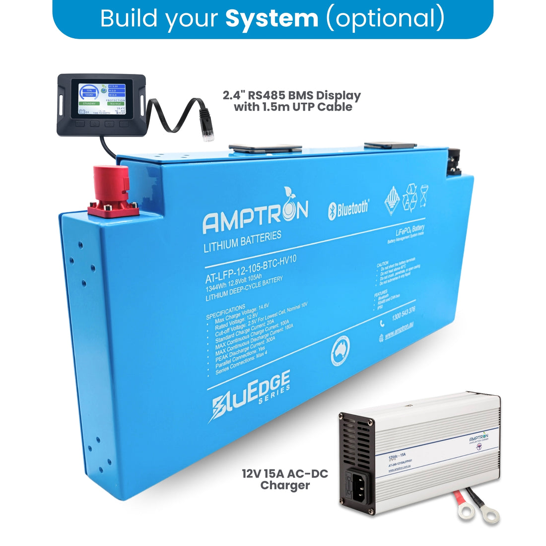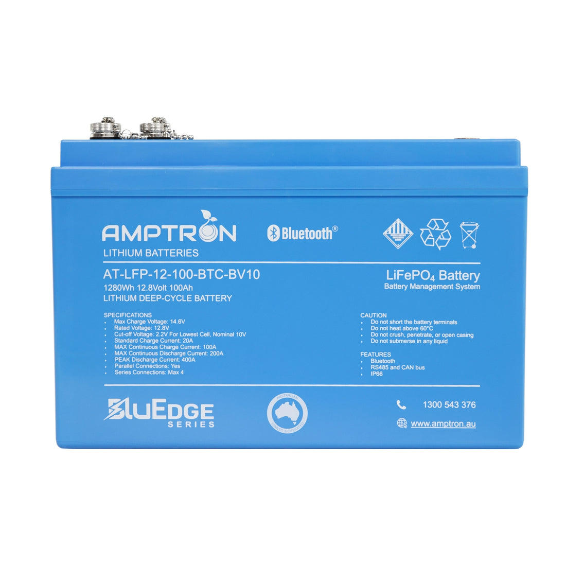 View details Hide details Amptron 12V 100Ah 200A LiFePO4 BluEdge Lithium Battery – Deep Cycle with Bluetooth, RS485 & CAN Bus