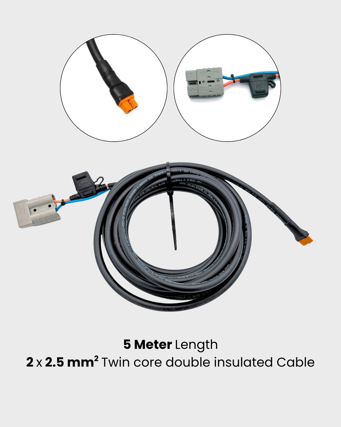 - 5 meter cable comes with an inbuilt 15a Fuse