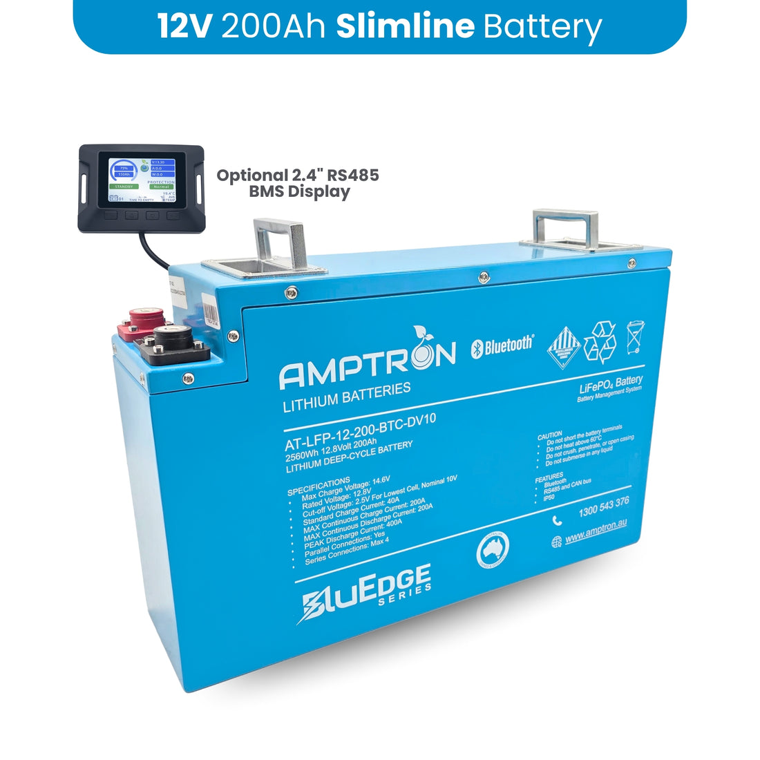 View details Hide details 12V 200Ah / 200A LiFePO4 Aluminum Slimline BluEdge Battery with Bluetooth